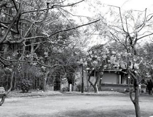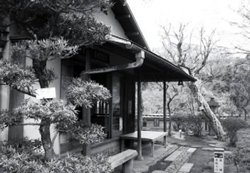 (左) 日本庭園入口の冠木門 (右) 建設当時のままの姿が保存されている書院