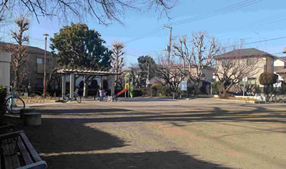 公園に入ると左手に藤棚があり、その下の縁台では、公園内で走り回る子どもたちを見守るお母さんたちが楽しそうに談笑していた。藤の花の開花は4月末から5月上旬。楽しみだ。