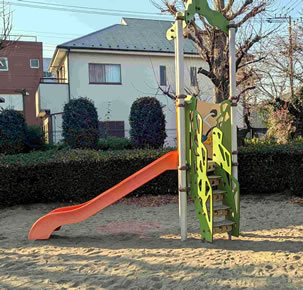 また、傍らの緑とオレンジ色が鮮やかな滑り台では、お父さんに支えてもらいながら小さな子どもが一生懸命階段を上っている姿がほほえましい。