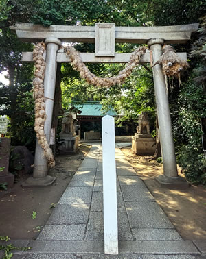 奥沢駅から徒歩3分。東急目黒線とクロスする自由道りを北に進むと、交差点の一角に鳥居がある。大井町線、東横線の自由が丘駅からも5〜6分と近い。毎年、同神社では「大蛇お練り」が9月の第2土曜日に開かれるということで訪問した。