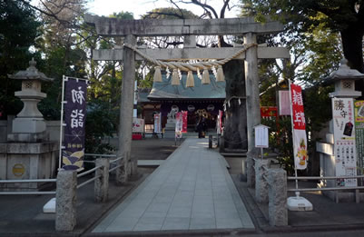 この日はまだ1月中旬ということもあり、鳥居の前には「新春」、「謹賀新年」などと書かれた色とりどりののぼり旗が立っていた。