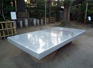 社殿の左手に進むと、なんと石の卓球台があった。境内に置かれた卓球台は異様な存在感を放っているが、ラケットと球の貸し出しも行なっているそうなので、友人同士で遊んでみるのもいいだろう。
