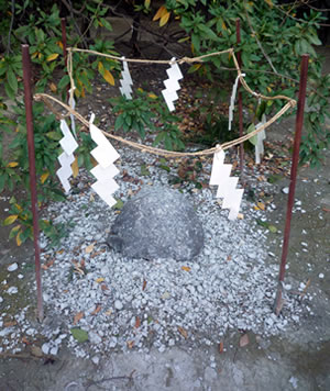 卓球台の近くには「厄割石」がある。これは「桃玉」という小石を大きな「厄割石」に投げて割ると厄が落ちる、というもの。この日は、若い女性が思いっきり桃玉を投げつけていた。これで今年も安泰というものだ。