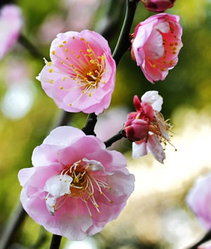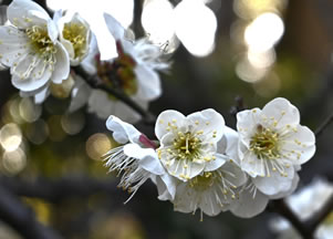約30種の梅の中には淡い桃色から白色に変化する八重咲の大輪「見ると驚く」ほど見事ということで名付けられた見驚(けんきょう)、国内に数本しかない稀少品種「座論梅」、遅咲きの「八重揚羽(やえあげは)」などが楽しめる。