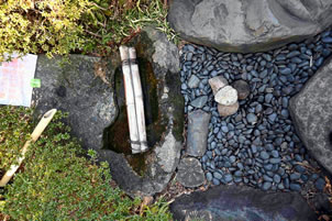 和室は庭に池があり錦鯉が泳ぎ、落ち着いた空間を演出している。その庭の片隅につくられた水琴窟など楽しめる。