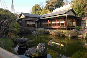 1983年、大田区に寄贈された風流な和建築がステキな茶室「聴雨庵」は、政治家・藤山愛一郎氏の所有だった。もう一つの茶室「清月庵」も伊東深水のアトリエを設計した川尻善治氏が自宅に設計した離れだったものを、大田区の華道・茶道家の中島恭名氏が大田区に寄付したもの。